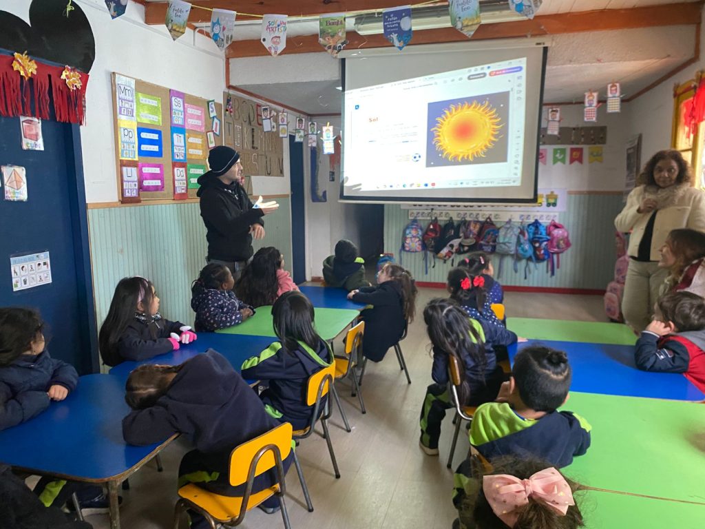 La actividad incluyó una experiencia educativa liderada por el investigador de SERC Chile, Eduardo Schott, quien conversó con los niños y niñas sobre el Sol y su importancia en nuestras vidas. A través de preguntas sencillas, imágenes y actividades de coloreo, los niños pudieron expresar sus ideas y asombro sobre el entorno natural, comprendiendo conceptos como la luz, el calor y la energía solar de forma lúdica y participativa. La jornada finalizó con la entrega oficial de los libros y una sesión de fotos grupal para conmemorar la experiencia.